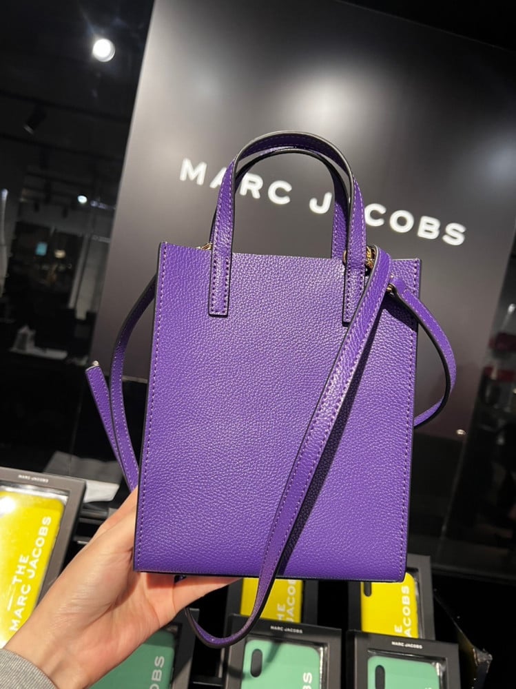 • شنطة جلد موف من مارك جاكوبز تتمتع بذراعين مختلفين في الطول، حيث يأتي أحدهما بطول قصير والآخر بشكل كورس، مما يتيح لك إختيار الطريقة المفضلة لحمل الشنطة وفقًا لإحتياجاتك.